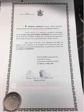 認(rèn)證即認(rèn)可文書上的簽字和印章的真實(shí)性,使加拿大出具的認(rèn)證文書能被中國(guó)當(dāng)?shù)氐南嚓P(guān)部門承認(rèn),不致因懷疑文件上的簽名或印章是否屬實(shí)而影響有關(guān)文書的法律效力。